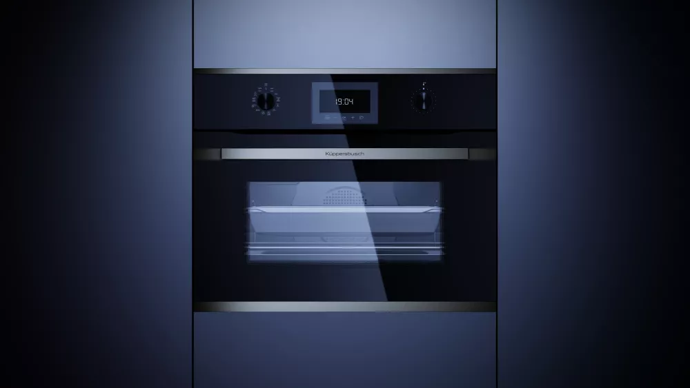 Управление. Электронная система с поворотными алюминиевыми переключателями и TFT-дисплей с графическими полями. На дисплее отображается фактическая и рекомендуемая температура, а также время до окончания приготовления.