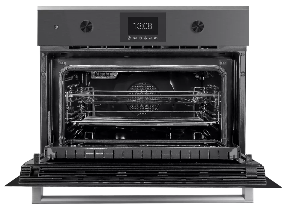 Управление. Электронная система с поворотными алюминиевыми переключателями и сенсорными кнопками, TFT-дисплей диагональю 3,9 дюйма. На дисплее отображаются фактическая и рекомендуемая температуры.
