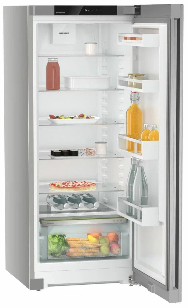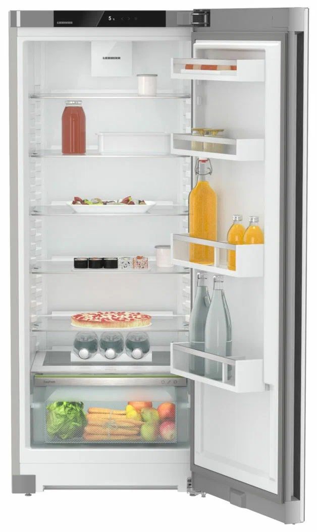 Однокамерный холодильник Liebherr Rsfd 4600-22 001 ориентирован на тех, кто ценит аккуратный минимализм и удобство повседневного хранения. Поверхность SteelFinish поддерживает строгий, «холодный» стиль кухни и легко очищается, а лаконичная утопленная ручка визуально «облегчает» фасад и делает открывание комфортным. Концепция InteriorFit помогает аккуратно встроить прибор в нишу глубиной 60 см — выступает только дверь.