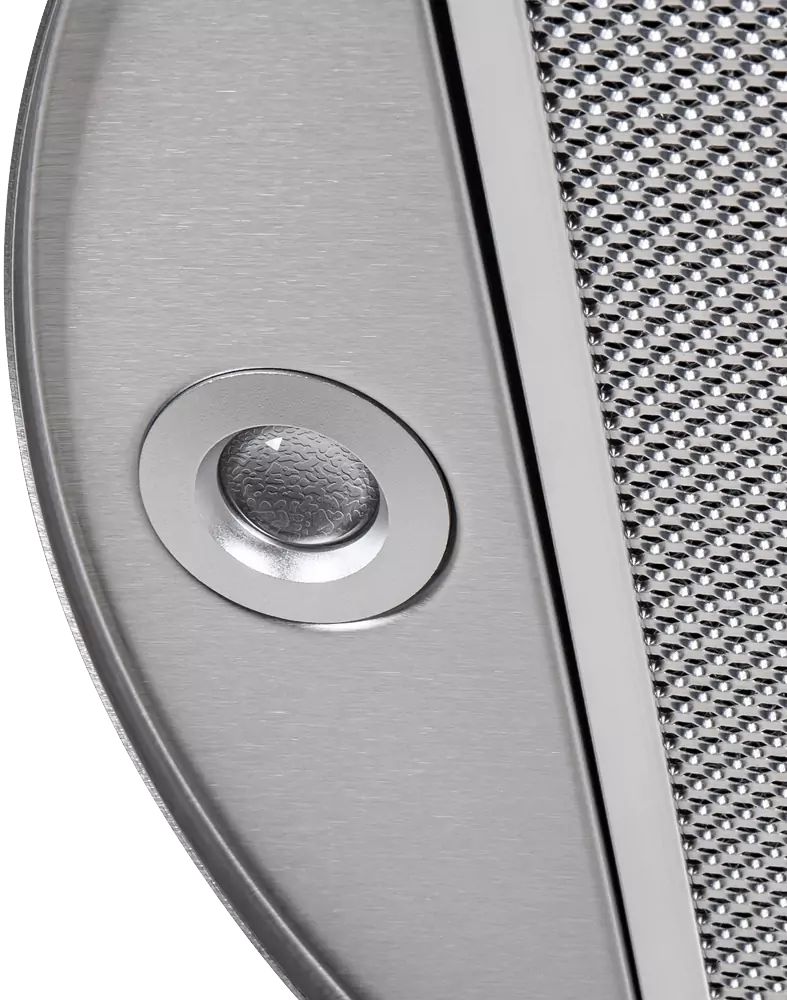 Корпус цилиндрической формы, выполненный из нержавеющей стали с термостойким покрытием, устанавливается на стену над поверхностью плиты. Алюминиевый многослойный жироулавливающий фильтр находится в нижнем торце вытяжки.